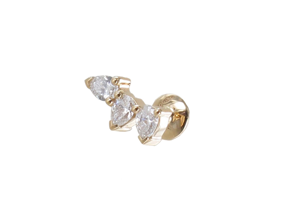 Le Stud WePiercing Triade Poires incarne luxe et finesse. En or 18 carats 750/1000, il brille avec trois diamants Poires de 0.19 carats. Chaque diamant, de 3x2mm, offre une qualité H-SI exceptionnelle.
